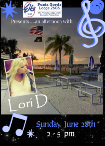 PG Elks June 28th Lori D SOLO + Add to Google Calendar + iCal / Outlook export 00 days 00 hours 00 minutes 00 seconds Date Jun 28 2026 Time 2:00 PM - 5:00 PM Share this event